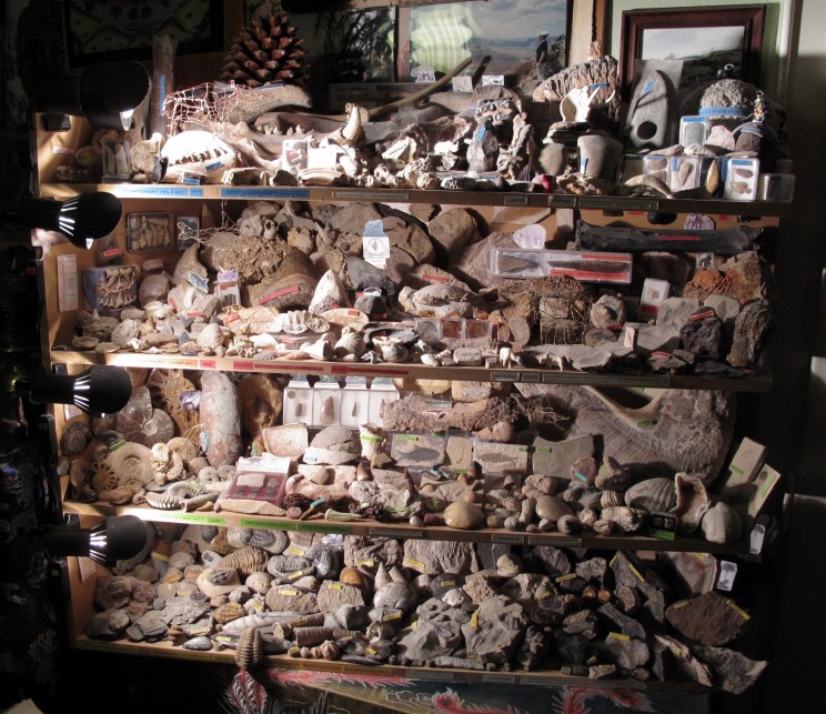 Chloubou naší „druhohorní police“ jsou vedle skořápek dinosauřích vajec (Saltasaurus, Saurischia), také kosti a zuby dinosaurů vodních (Mososaurus, Plesiosaurus), chodících po zemi (Spinosaurus, Carcharodontosauus, Megalosaurus) i létajících (Anhanguera pterosaurio). Vedle toho obsahuje i řadu zkamenělých ježovek, schránek skořápnatců, ramenonožců (Siberella), měkkýše loděnky (Nautiloidea) i otisk ryby. Pro druhohory jsou také charakteristické fosilie nejrůznějších druhů amonitů (Perisphintes, Aroniceras, Hildoceras bifros aj.). Místy nálezů jsou vedle Slovenska zvláště Maroko, Madagaskar, Čína a Amerika.