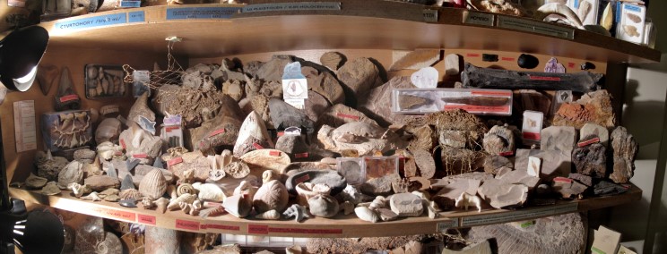 Třetihorní část naší domácí sbírky představuje nejtypičtější fosilie z té doby: nálezy mnoha druhů mlžů a plžů, otisky ryb, ba i fosilii kraba. Pochopitelně vedle třecích destiček rejnoků i značné množství žraločích zubů nejrůznějších druhů, včetně nejmohutnějšího - Megalodona. Ze suchozemské oblasti jsou zde četné otisky listů, hmyz uchovaný v jantar, ba dokonce i kosti vyhynulého slona deinotheria. V potocích vznikly „Bílinské koule“. Nechybí však ani úlomek meteoritu a ukázky vltavínů a moravských koulí. Nálezy pochází od nás, z Maďarska, Německa, Ruska, Pobaltí i USA.